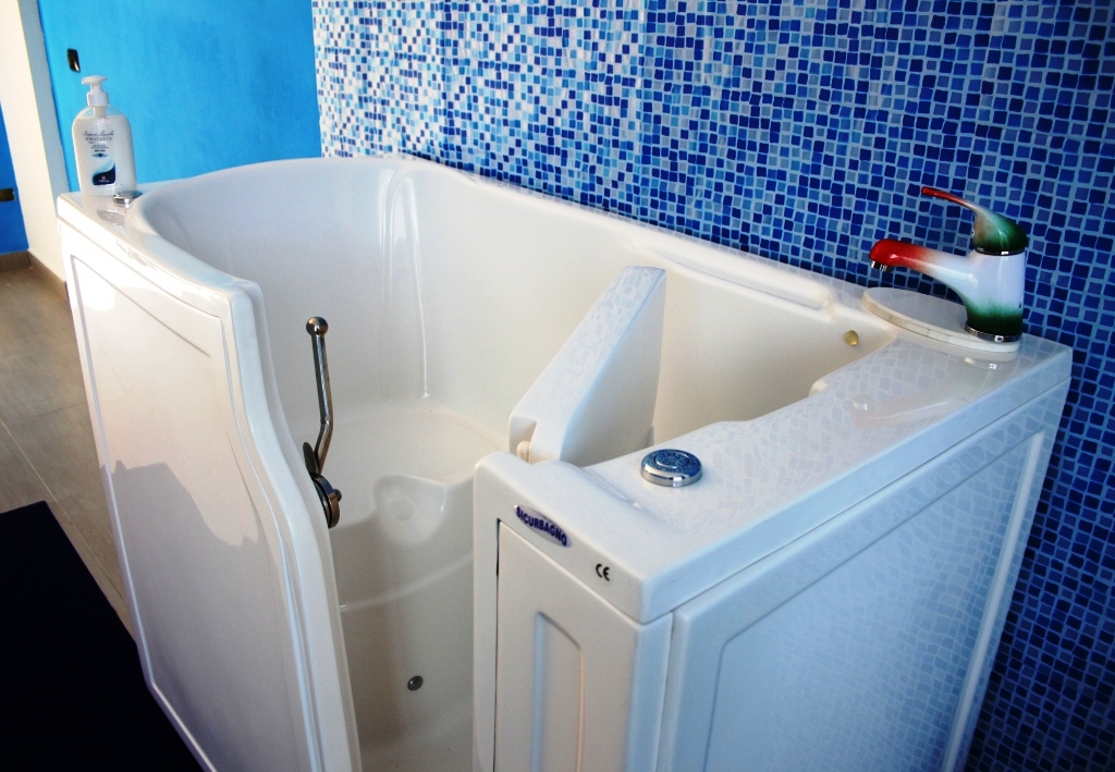 Vasca Facile: Caratteristica accesso diretto senza alzare le gambe. Utile a chi e’ in carrozzina e si sposta direttamente in vasca.